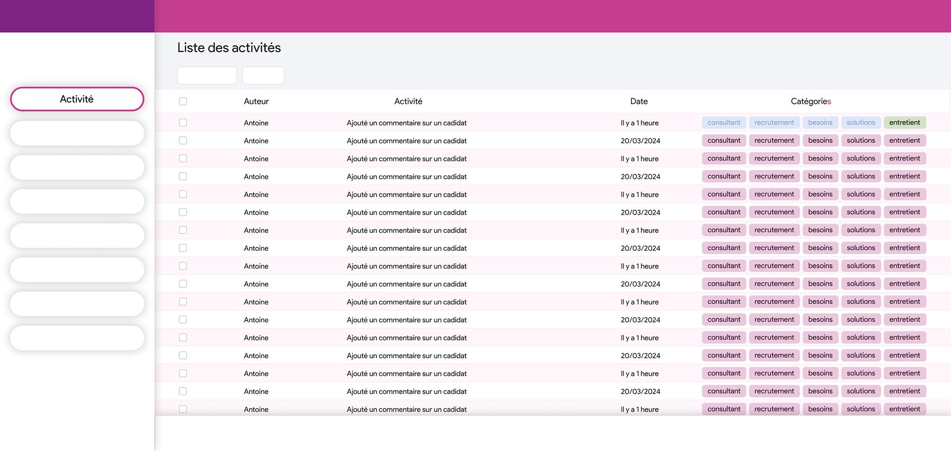 Et voici quelques propositions pour un affichage des activités • Affichage des notifications