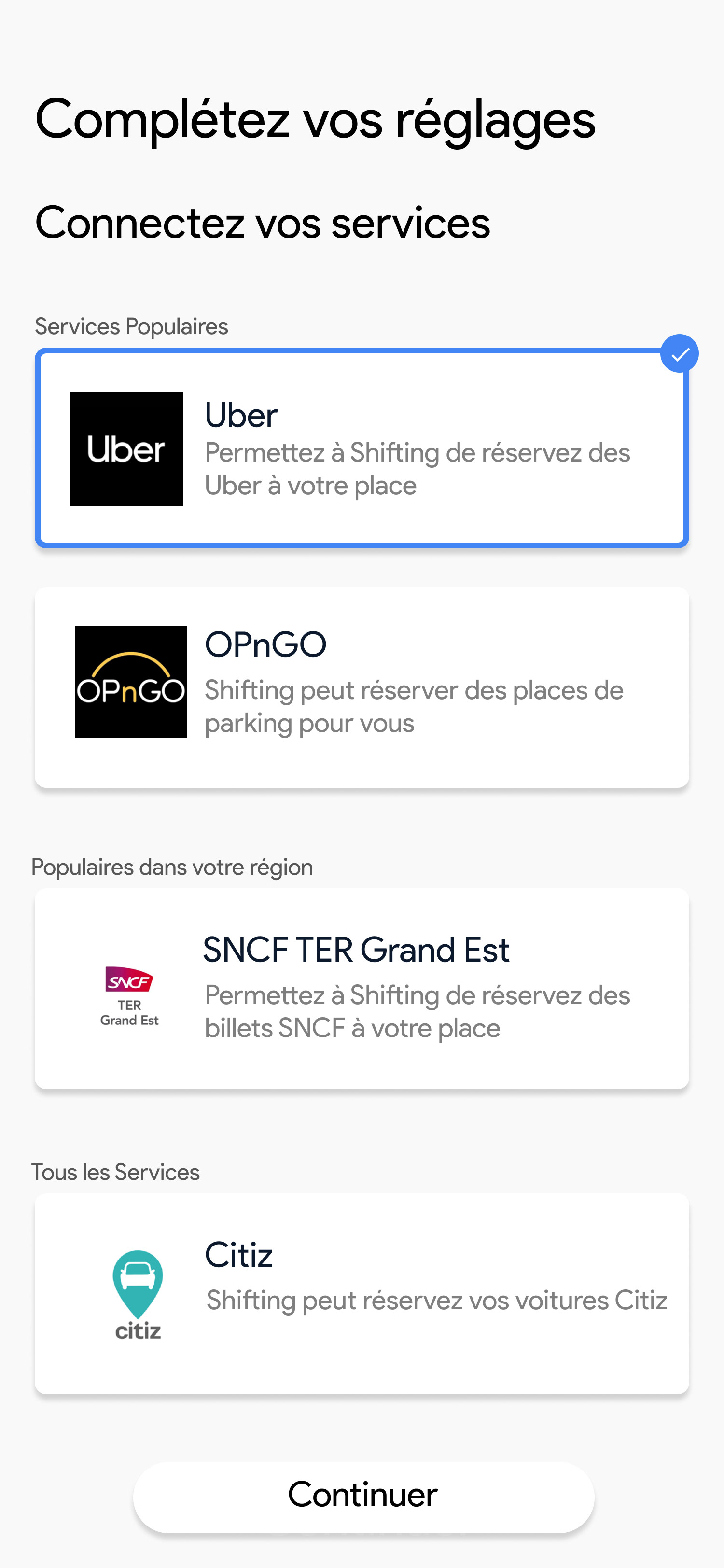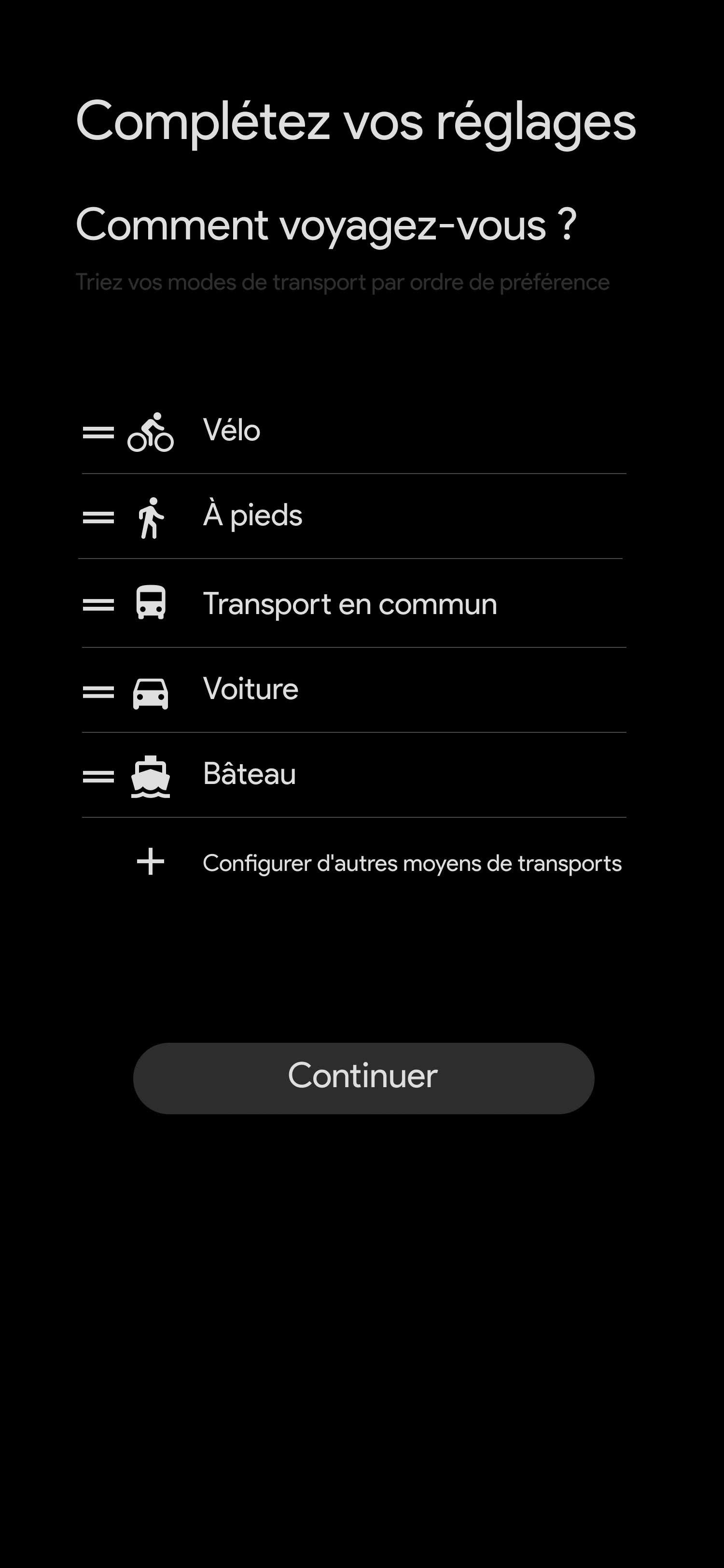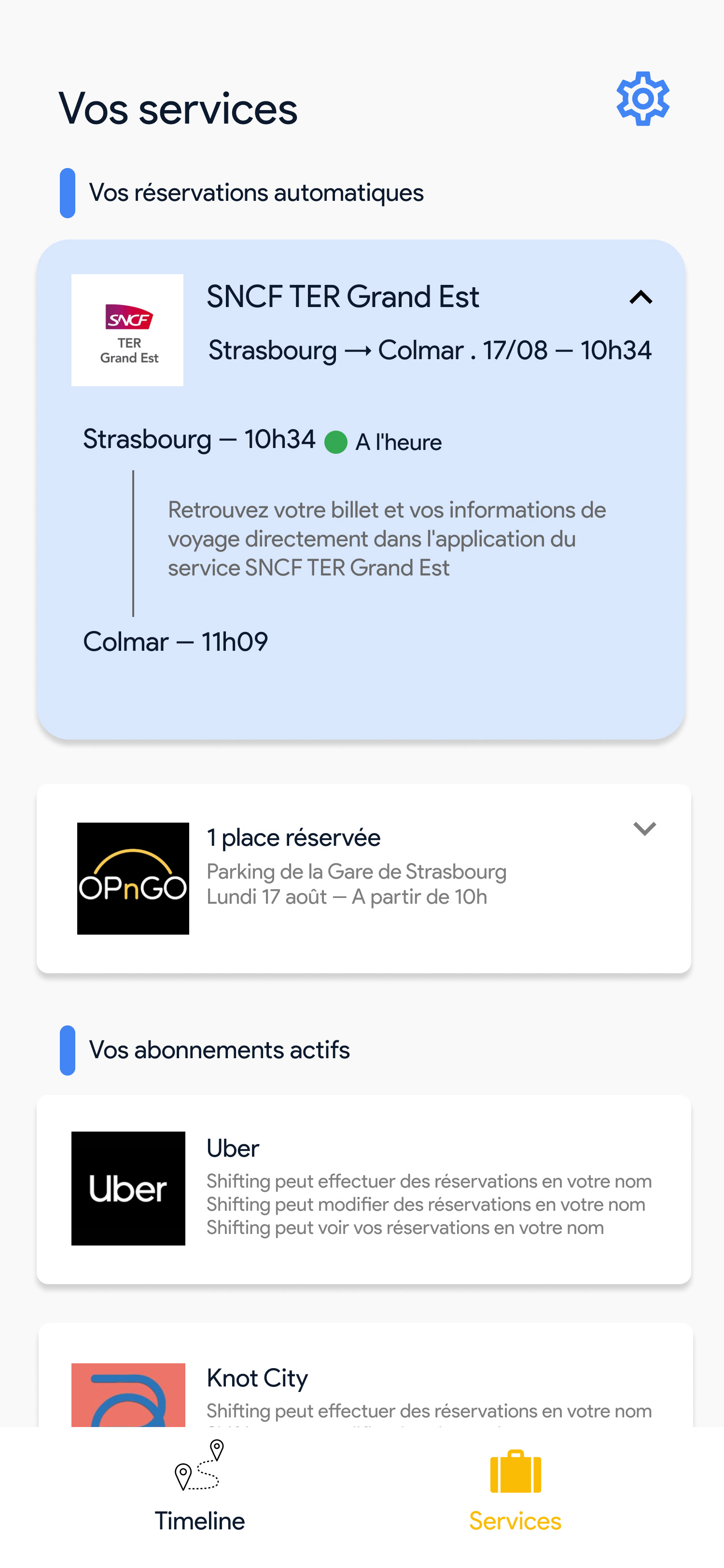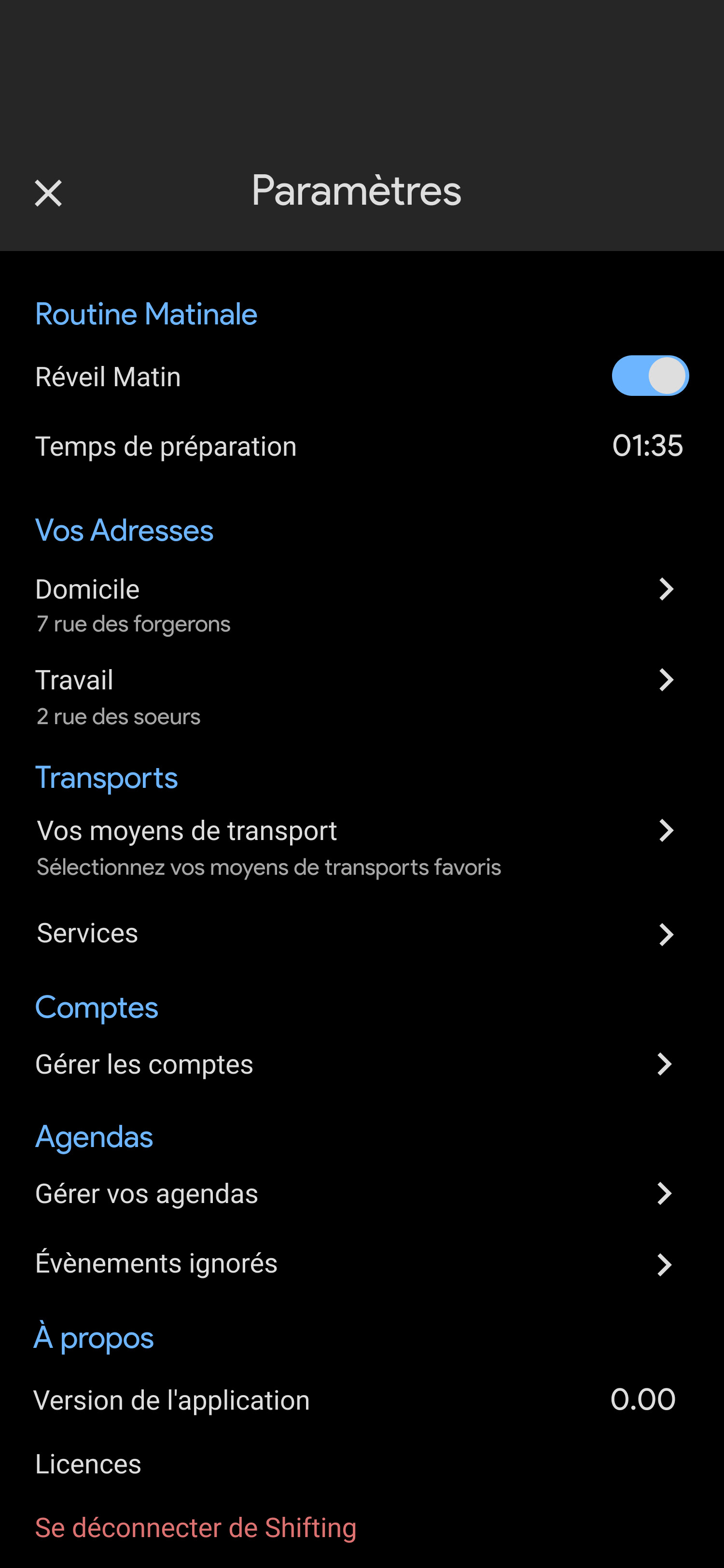 Activer la géolocalisation • Synchronisation des agendas • Ajout des adresses • Ajout des moyens de transports de l'utilisateur • Connexion aux services tiers