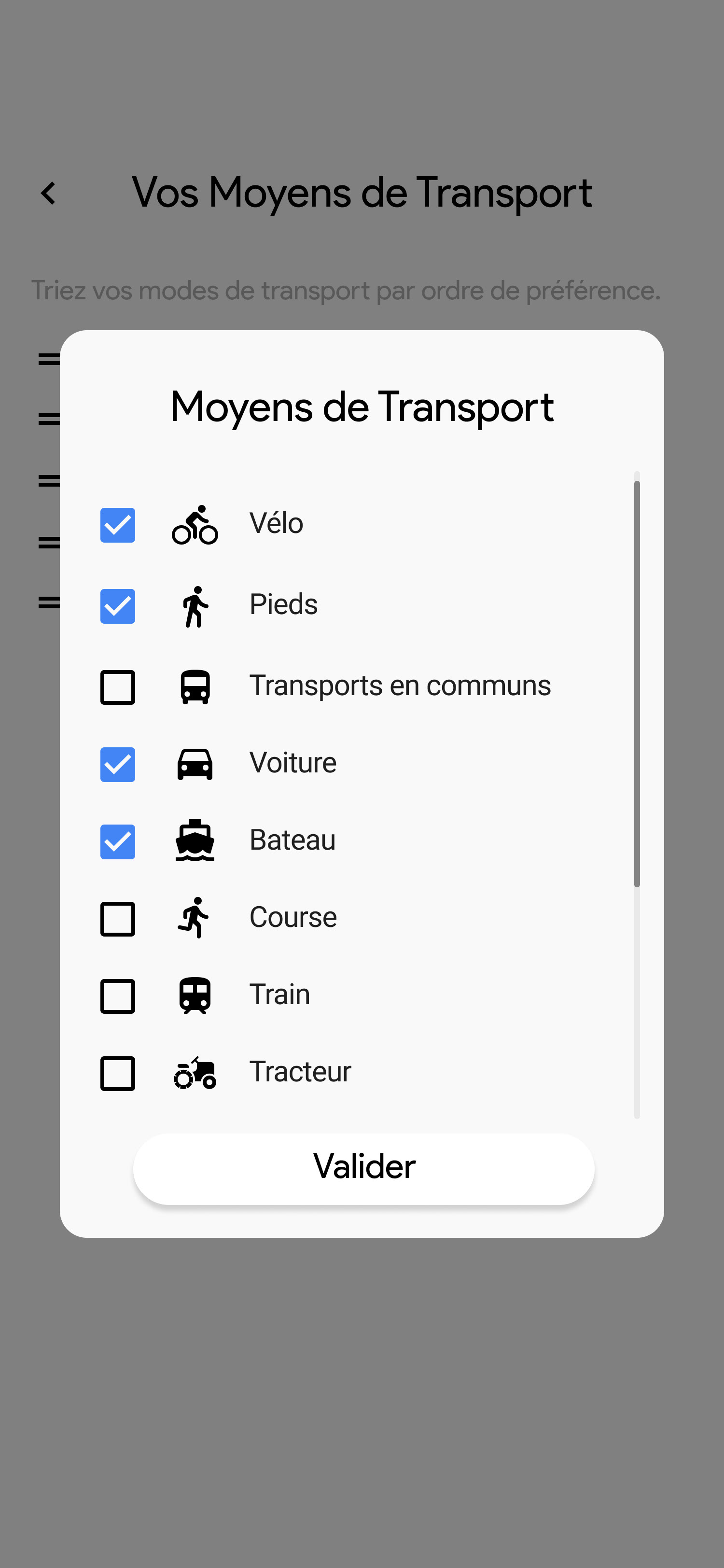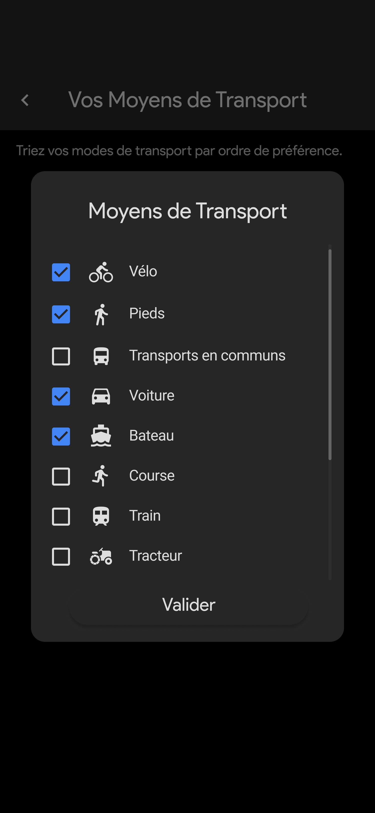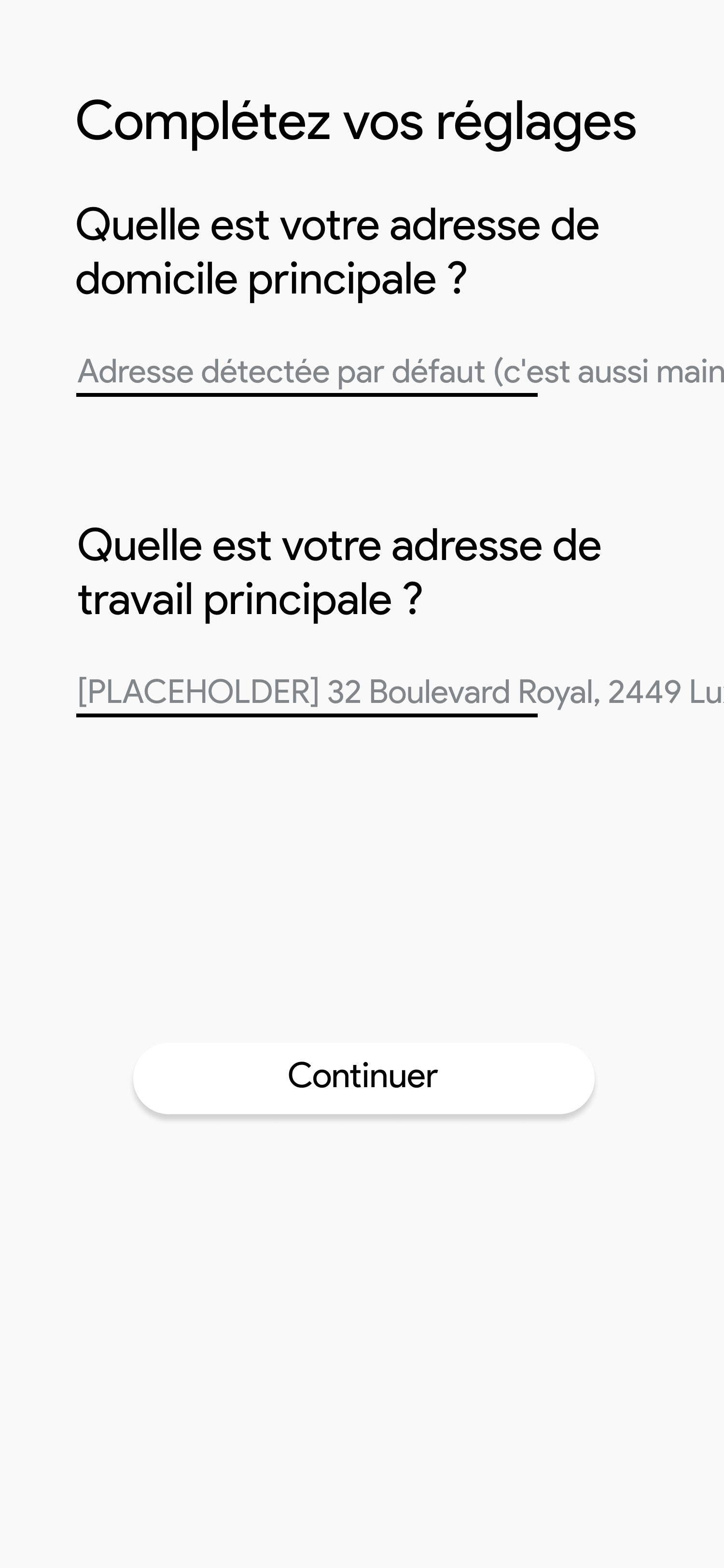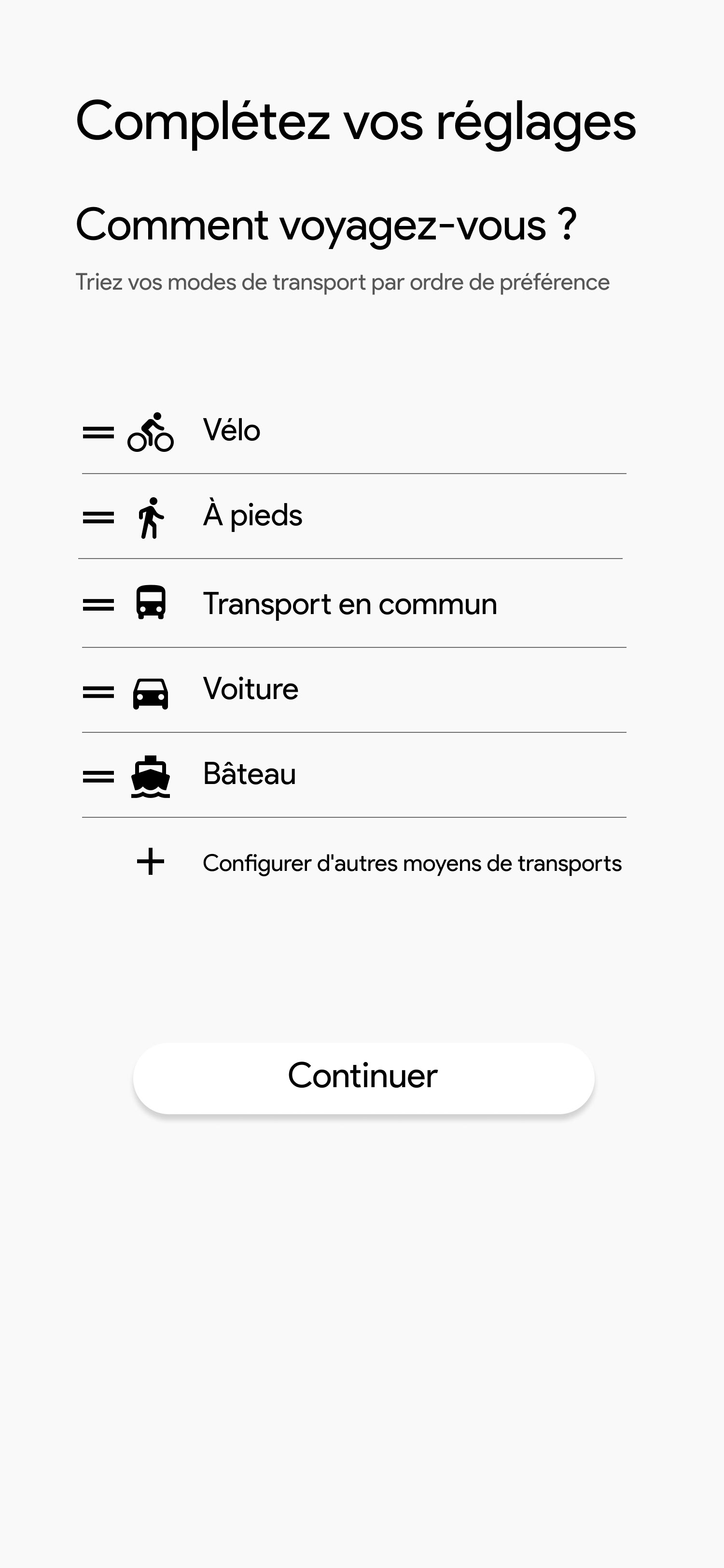 Activer la géolocalisation • Synchronisation des agendas • Ajout des adresses • Ajout des moyens de transports de l'utilisateur • Connexion aux services tiers