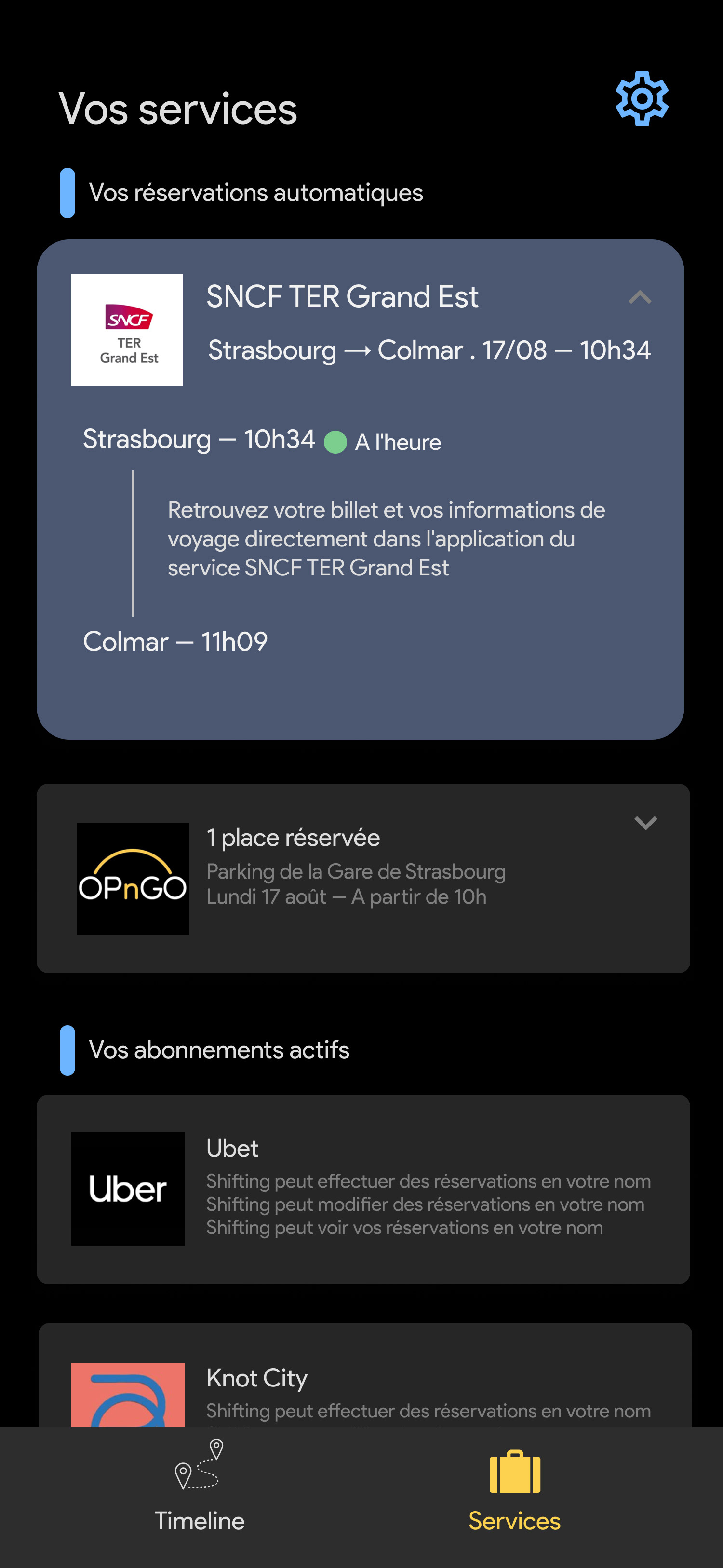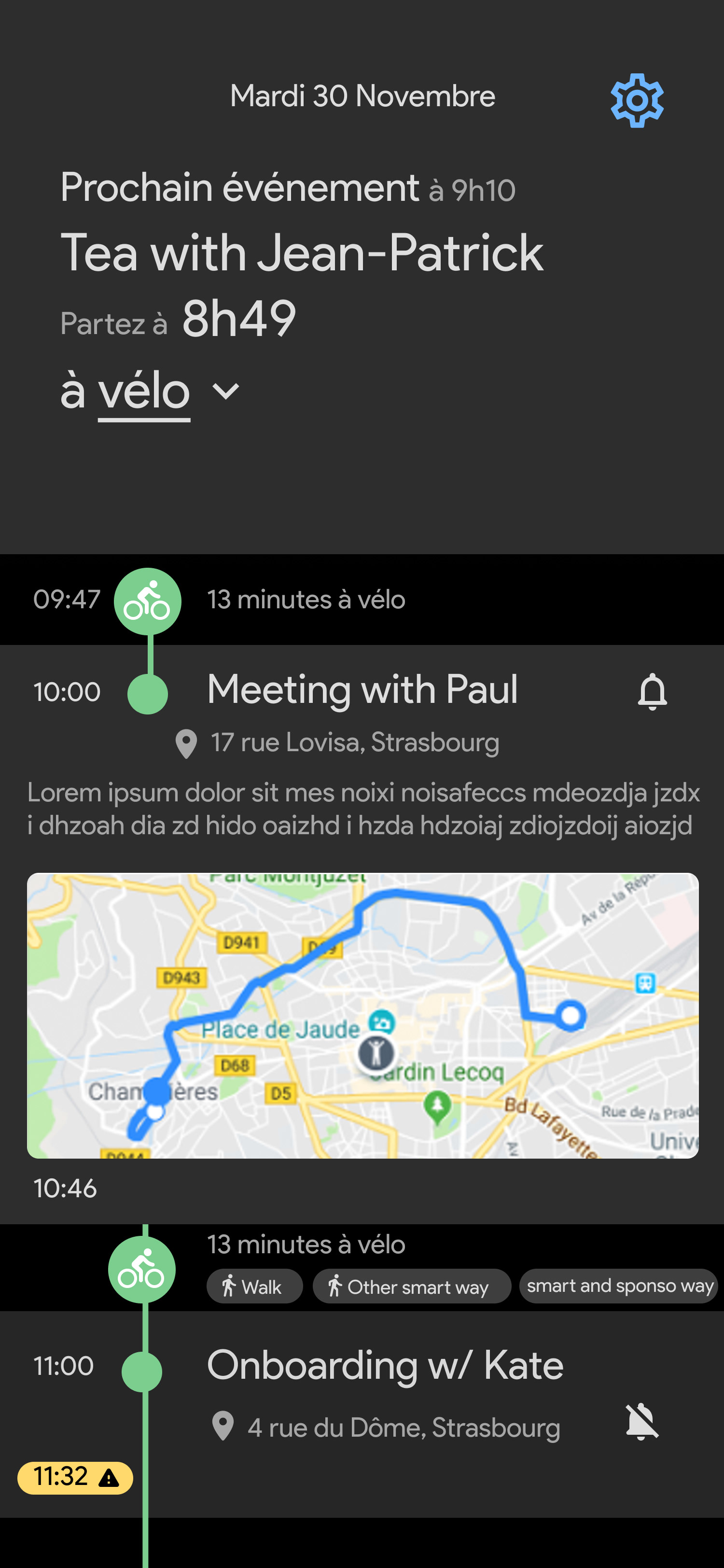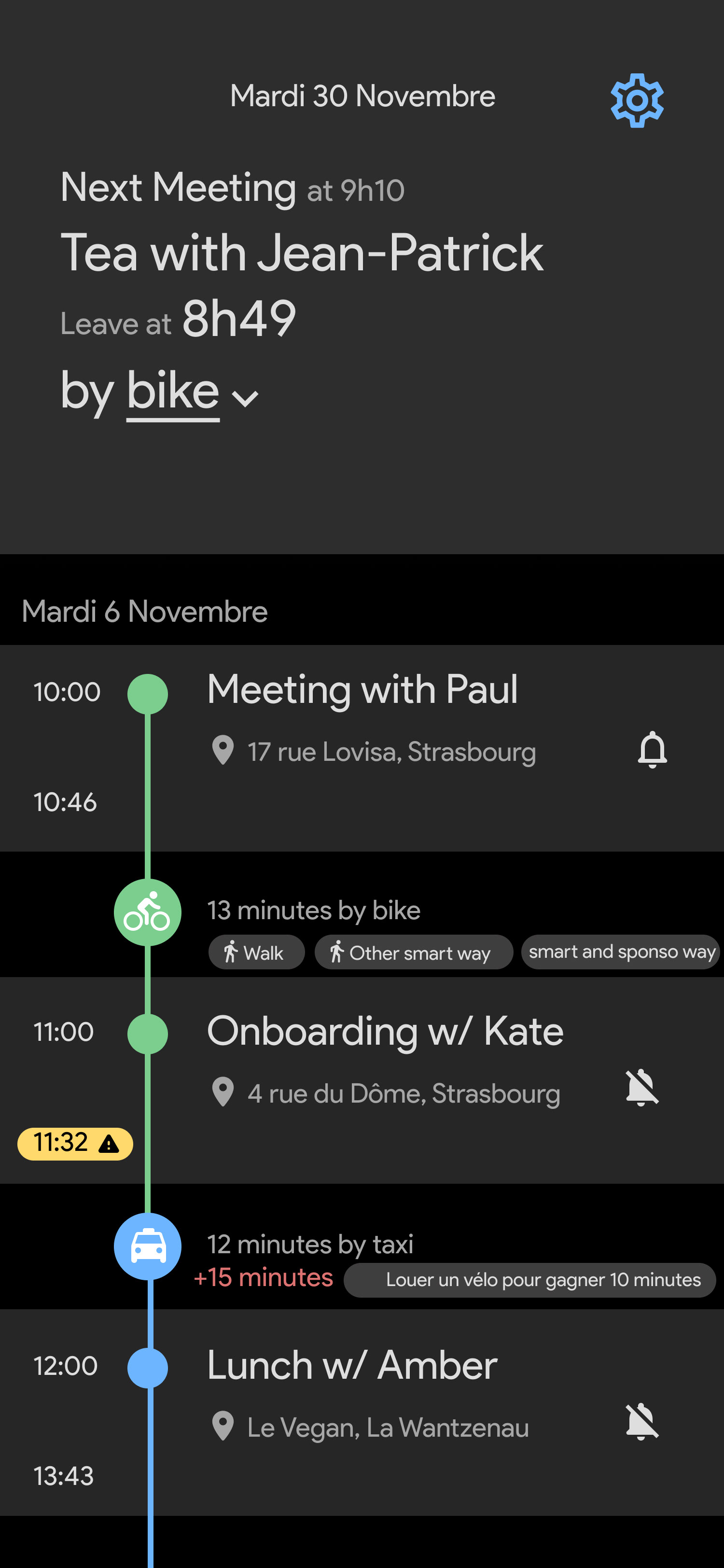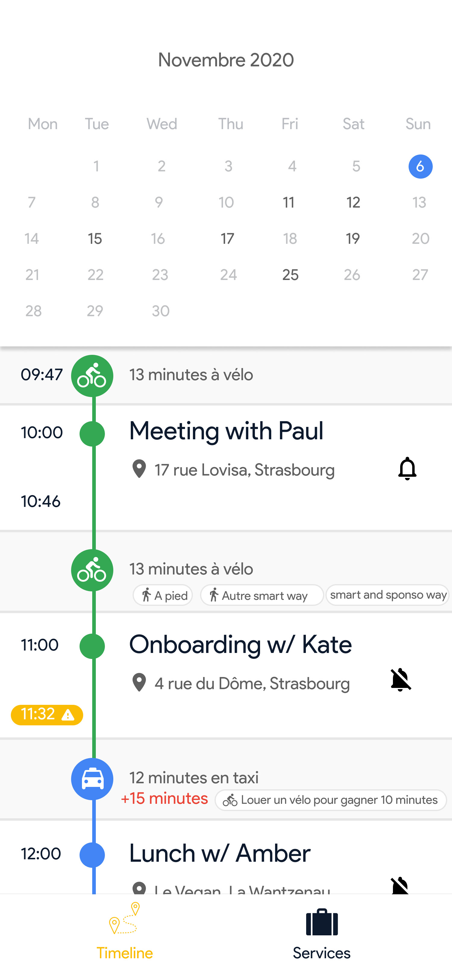 Voici l'onglet principal de l'application•La timeline avec les événements de votre calendrier